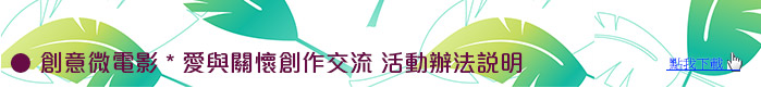 (一) 徵件期間: (四) 2015金善獎論壇暨頒獎典禮: 另行公告於草根創意微電影金善獎活動網頁及Facebook |