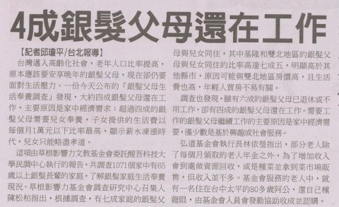 經濟需要 台灣95萬名銀髮族仍工作 |